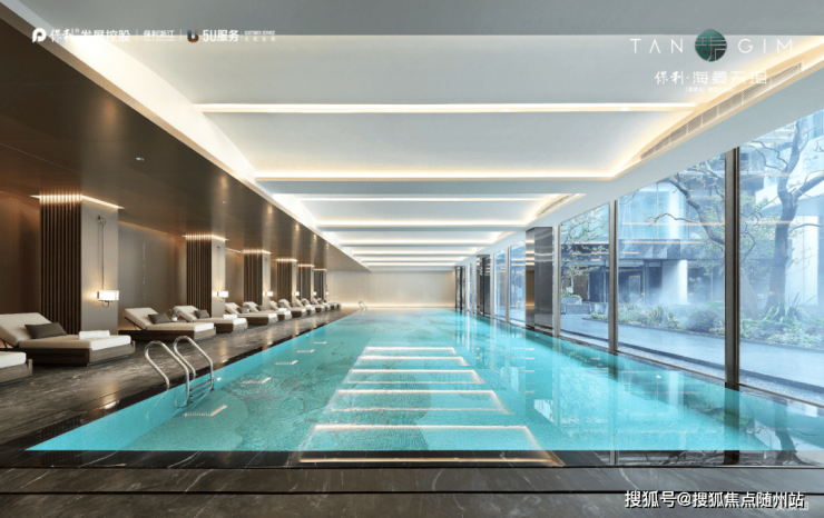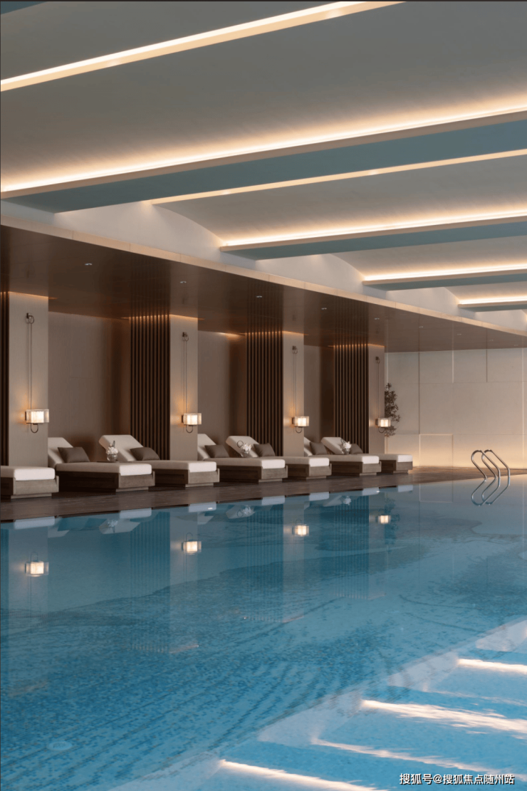 半国标级的无界泳池,一年四季皆可享受24小时恒温体验;泳池底定制繁花造型艺术马赛克更添一丝优雅艺术、落地玻璃窗打破空间与自然的界限,与室外水景无界连接。泳池更衣区具备干湿蒸功能,高奢酒店级精奢服务体验。