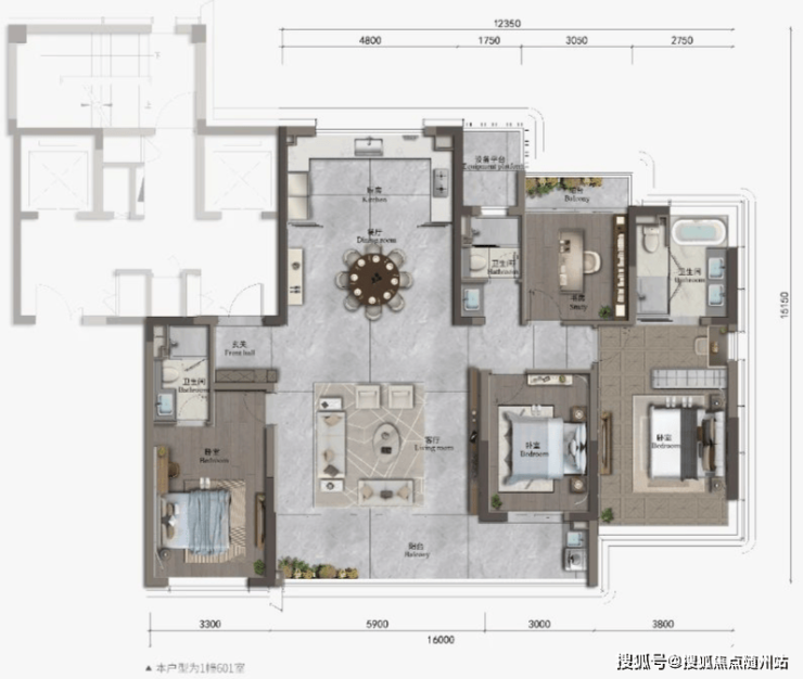 户型③:建面约188户型图(效果图)