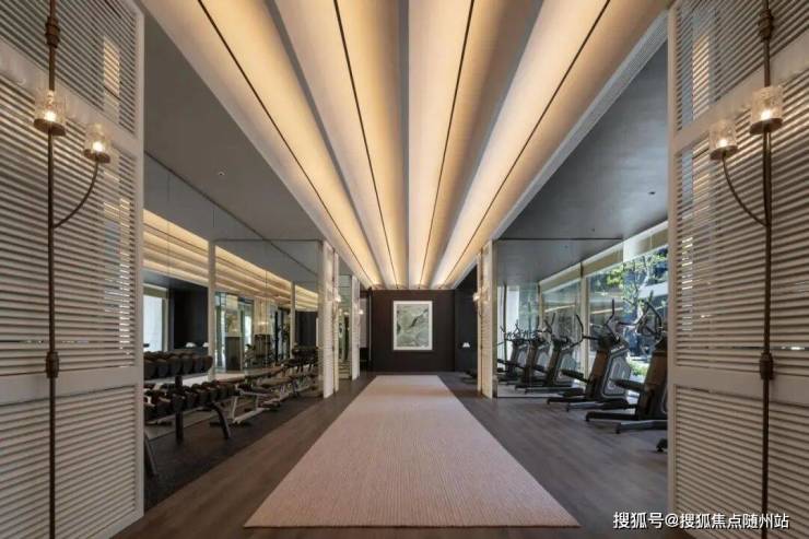 运动私享区规划专业健身、瑜伽两大功能,配备顶级健身设备,大面积全景落地玻璃窗,开阔视野,下沉庭院的美景一览无遗。