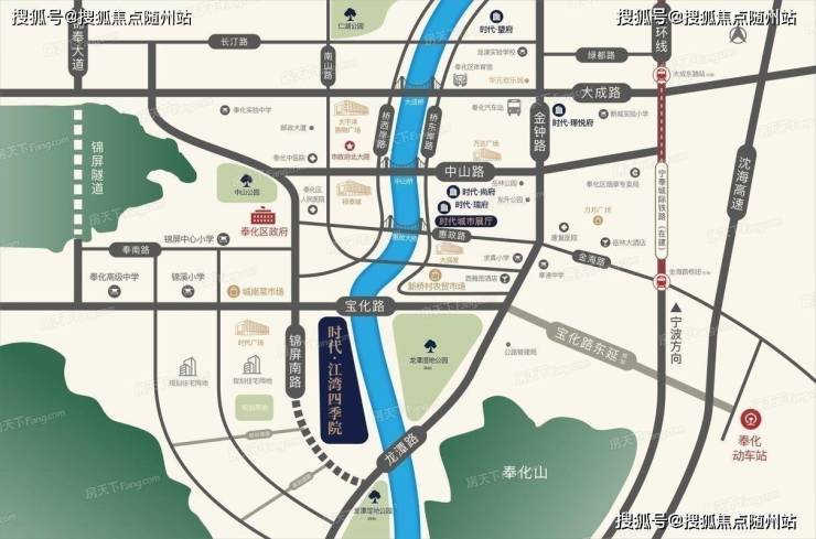 项目地址:宁波奉化区锦屏南路与宝化路交叉口(奉化江畔,近龙潭湿地公园)