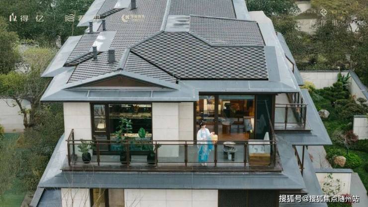 穿过雅致会所,来到宋代美学与现代精工碰撞交融的样板间。未入内先惊艳,建筑采用歇山重檐形制,彰显礼制底蕴,寻杖绞角造的雕栏细琢,古韵盎然。