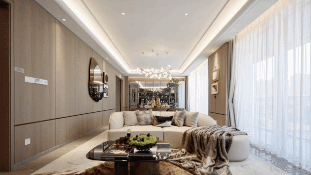充分尊重高净值家庭的社交品位,建面约290㎡观山上叠将客厅、餐厅、厨房、阳台融合一体,打破空间壁垒丰富场景演绎。