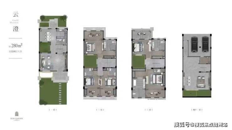 以建面约350㎡边套为例,一楼三面为花园环绕,室内空间完全留给客餐厅与厨房;二楼则是尺度阔绰的三间套房,确保整个家的动静区分离。