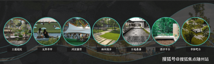 从落客区的水景到多个主题庭院,景观设计上利用跌水、浅滩、旱溪等不同水的形态与形式,营造贯通示范区的水脉。通过台地叠瀑结合下沉庭院的手法,形成引水入园的活力水境,既有效隔绝喧嚣,亦叠合平台功能,丰富空间体验的层次感。