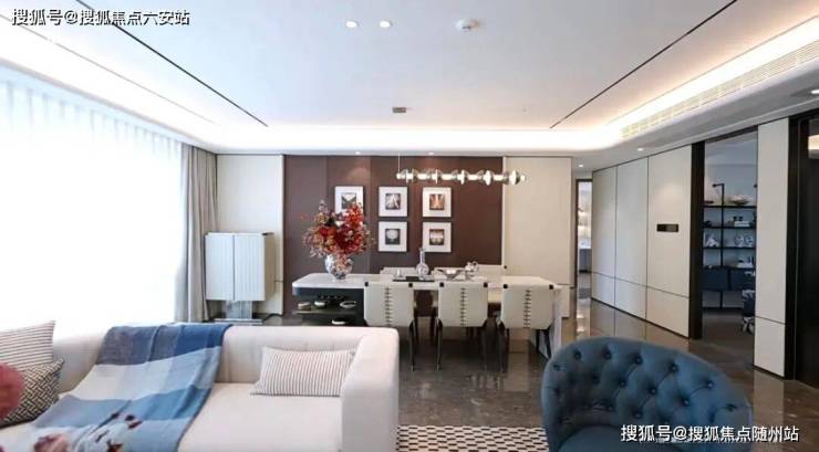 室内的户型也很有惊喜,139㎡的边套,是之前市场几乎没有的四开间向南格局。这个餐客厅是不是很开阔,他有将近40㎡。得益于这里之前是将近10米开间的一体大阳台,并且只计一半的面积,在做了更加精细化的布局之后,就诞生了这样的舒朗感。