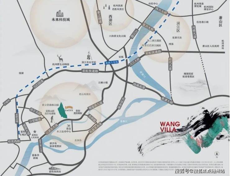 项目位于杭州稀缺的背山面水之地,依偎黄公望森林公园南麓与富春江水之间,距离滨江区仅约20公里,直线距离西湖风景区、钱江新城、钱江世纪城均约为25公里,完美置身于杭州半小时经济生活圈内。
