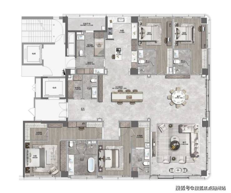到了这么大的面积,都要家人平权的一起改善,4个套房+保姆间的设计,每个人都有自己的独立空间,互不打扰。餐厅两个隐藏门进去,男孩房活泼有趣,女孩房文静甜蜜,10楼以上还能看得到钱塘江。