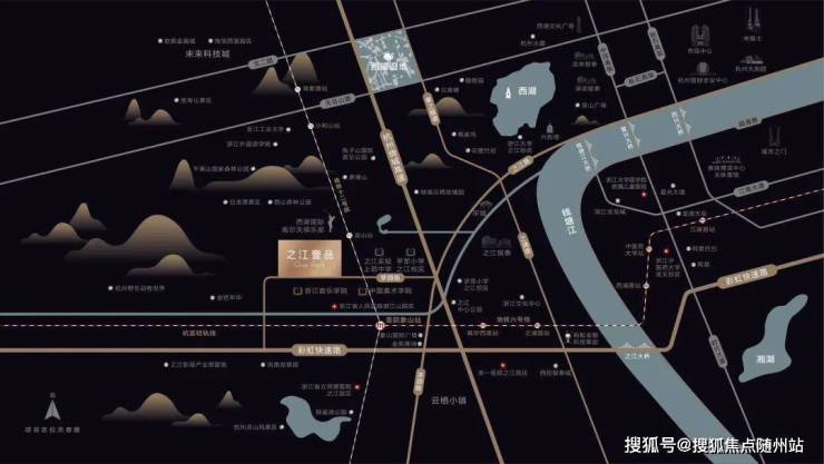 山水环绕、文艺兼备、全维配套、西湖教育的低密宜居住区,未科、滨江、钱江新城三大产业高地的地理等距中心,之江度假区板块的全面性得以孕育一个个经典豪宅;