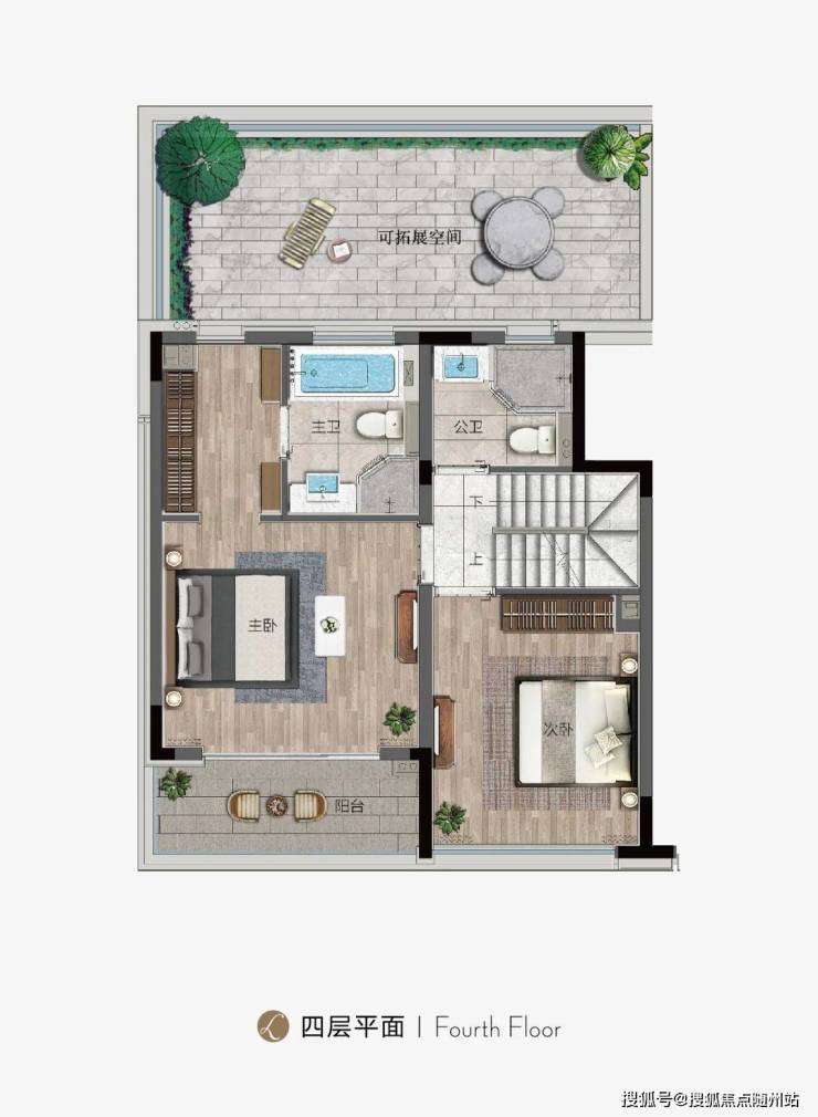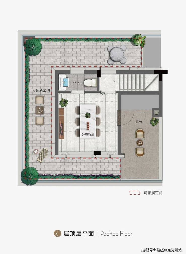 下叠带私享院子,跟随大园林的“阶梯爬升”的作法小阶梯入园,汀步条石板交叉拼铺装,分户绿篱所见即所得,不用后期交钱分户;