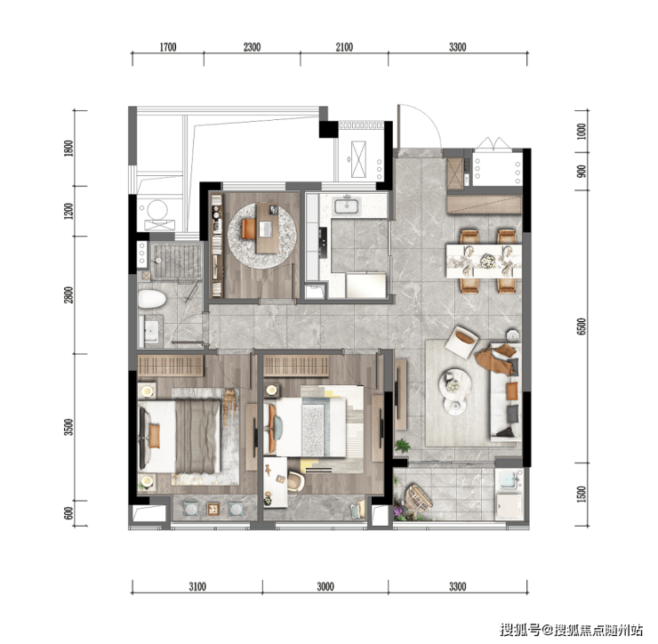 6米边厅+6.3米双联阳台:主次卧双朝南,独立储藏室收纳无忧,得房率90%。