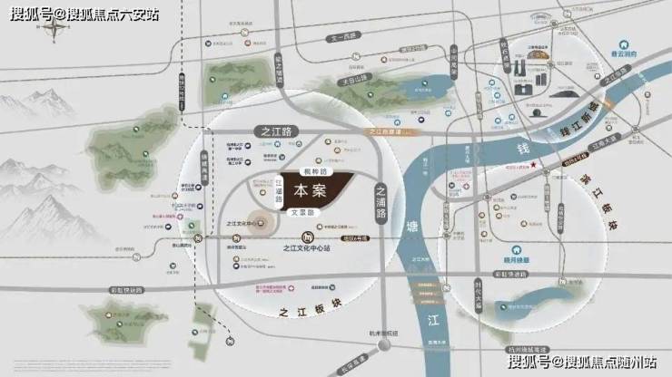 都心繁华生活圈 同频国际顶尖配套➢ 三高架 三路网 一轨交 链接多维立体交通项目周边立体交通覆盖,路网丰富,彩虹快速路、绕城高速、长深高速三大高架,紫之隧道、之江路、之江隧道(在建中)、之浦路快速路网,直线距离约600米地铁6号线之江文化中心站,便捷畅达杭州各大核心。