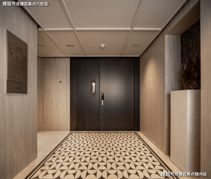 类一梯一户设计,尊崇城现270°全明电梯厅,以磅礴风景铺排归家的非凡礼序;从地面定制拼花岩板,到电梯门蚀刻的巴黎香奈儿旗舰店同款山茶花,处处彰显塔尖生活应有风致。入户铸铝门旁更特别嵌入大师高定款艺术壁龛式门牌,可将心爱收藏置放于此,以艺术品的独特表情,彰显极具辨识度的主家格调。