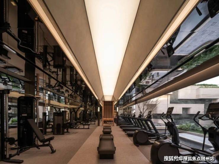 会所内设板块罕见的无界恒温泳池,巨大的可移动玻璃门将室内空间与下沉庭院无缝衔接。门开之时,庭院景致漫入室内,游泳仿佛畅游于自然之中。健身房、瑜伽室、休闲水吧点缀其间,成为安放身心的精神谧境。