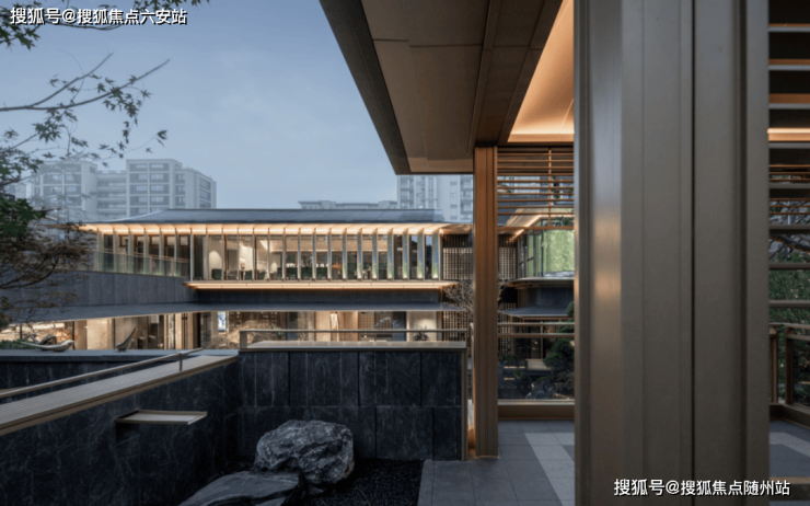 在立面打造上,提取“宋画”中的线条感,提取歇山顶样式,转译形成深远的挑檐,在视觉效果上给人以棱角分明、结构清晰之感,整体呈现一种清雅内敛的当代气质,大尺度巨幕玻璃窗镶嵌金色铝线条,如画框一般,攫住窗外的每一寸风景,让建筑隐于自然。🔻售楼热线:☎ 400 832 8823「售楼处」☎〢网上售楼中心〢🔻
