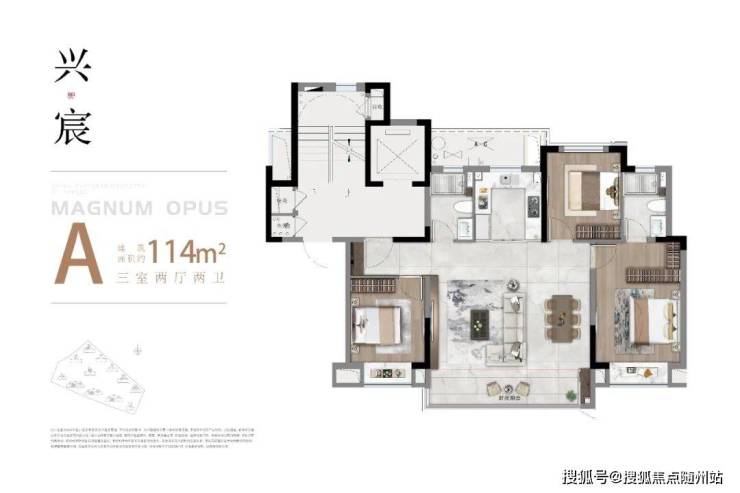 深研城市高阶家庭的改善需求,建面约114㎡的洋房产品,以创新的布局设计,充分放大尺度感与功能性,3房2厅2卫格局,约80%-81.3%得房率,将改善的起步户型,做到了全生命周期,兼容阔绰的空间尺度、丰富的空间场景以及有效的家庭社交,令人一见倾心。
