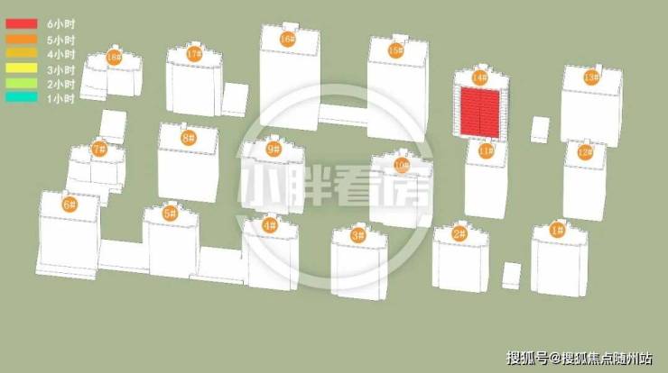 冬季:14#中低层受遮挡。就具体遮挡时间而言,14#全天不同时间段均会受到遮挡。