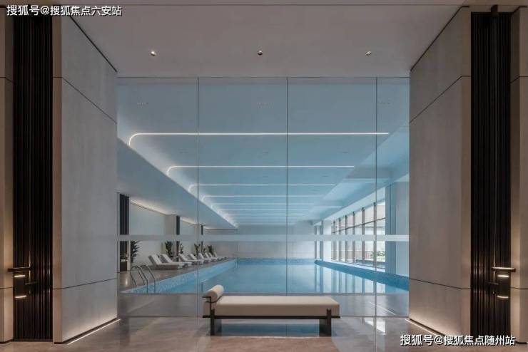 恒温泳池的尺寸为10*25,衔接外围景观水系,无边泳池的既视感在镜头下像极了在度假,随便一拍都是大片。如果你去过乌镇的阿丽拉酒店,那对这里应该会有一定的熟悉感。此外,更衣区也是男女各一个,以酒店专用等级的标准来打造。
