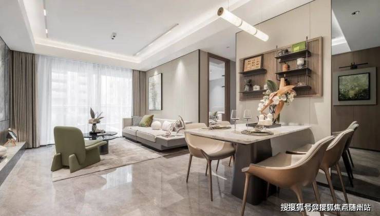 提前设计S墙,让玄关与餐厅链接处预留充足空间。华发的这一步,在保证墙面平整的同时,还满足年轻客群零食饮料储藏室的需求。当然如果是有高昂烹饪热情的业主,也可以自行在这里添置蒸烤一体机、餐边柜等,总之实用性非常高。