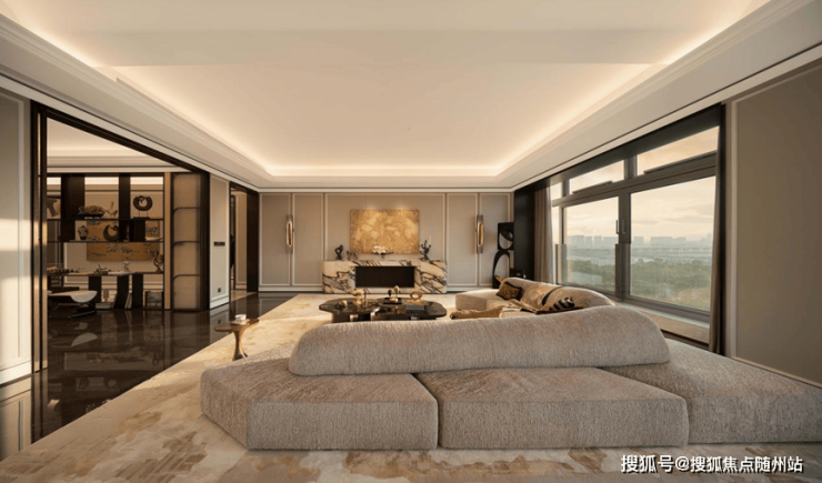梁志天&上海世尊共同执笔:410㎡湾潮户型:WSD上海世尊团队执笔,以独一无二的“摩登东方”设计语言,抽象提取东方写意精神,与复古摩登、自由艺术平衡相融,领潮钱湾黄金时代。