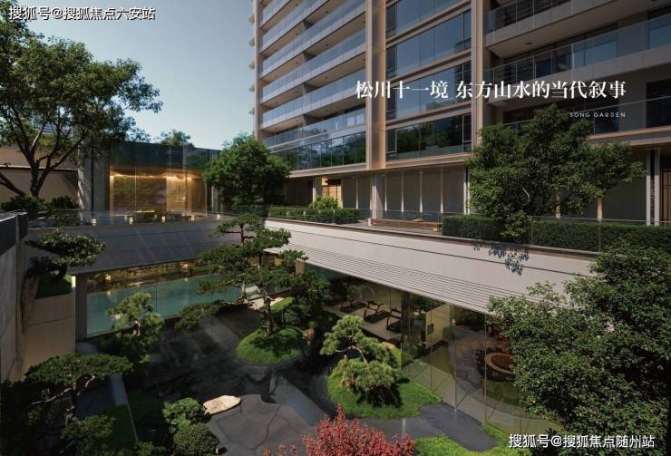 松川境的景观设计由北京顺景园林执笔,从北宋名画《溪山行旅图》中提取灵感,打造约3300㎡中央景观,铺陈约210米巨幅景观画轴,串联“松川十一境”情绪动线。项目通过三进院落、层层递进的设计,构建由喧嚣至静谧的归家动线。