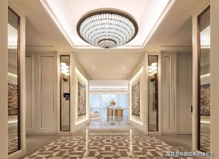 全盘类1梯1户设计,电梯厅的壁灯、定制的门牌标识体系、高级感满满的铸铝装甲门、升级的进口智能门锁……一个超大专属的电梯厅,将居者的身份感展现出来。