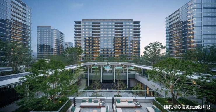 特选价值百万约200年树龄的日本茶梅;采用最长约13米的贝金米黄石材,整石切割的门头水景石材;标志性的芝兰玉树,从2:1到2.6:1进行比例迭新;架空层与街区圆融一体……