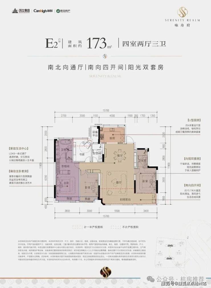 🏡 E2户型:173㎡ 四室两厅三卫(大平层B)