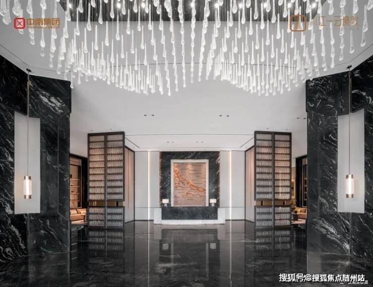 江一云境地面和地下入户大堂兼具奢华的酒店风和精致的艺术风。
