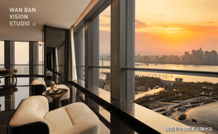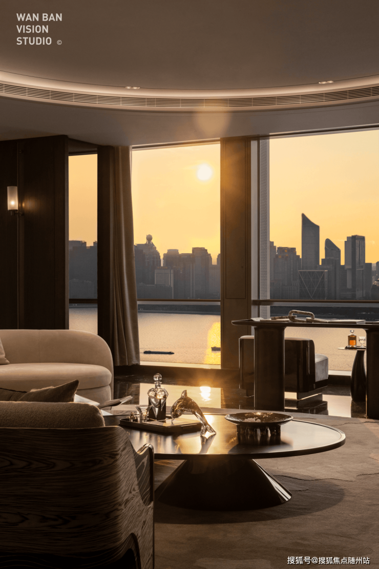 再走进样板间,这是两套接近「手工高定」的奢华世界,有着足够写实的生活细节丰度。建筑层高约4.3米,远超一般大平层的3.4米,搭配270°落地玻璃,是那种能让荷尔蒙瞬间爆表的气场。