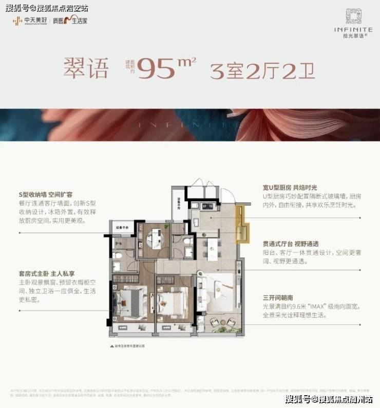 95㎡三房:S墙冰箱位、U型厨房玻璃隔断,空间利用率堪比100㎡竞品;