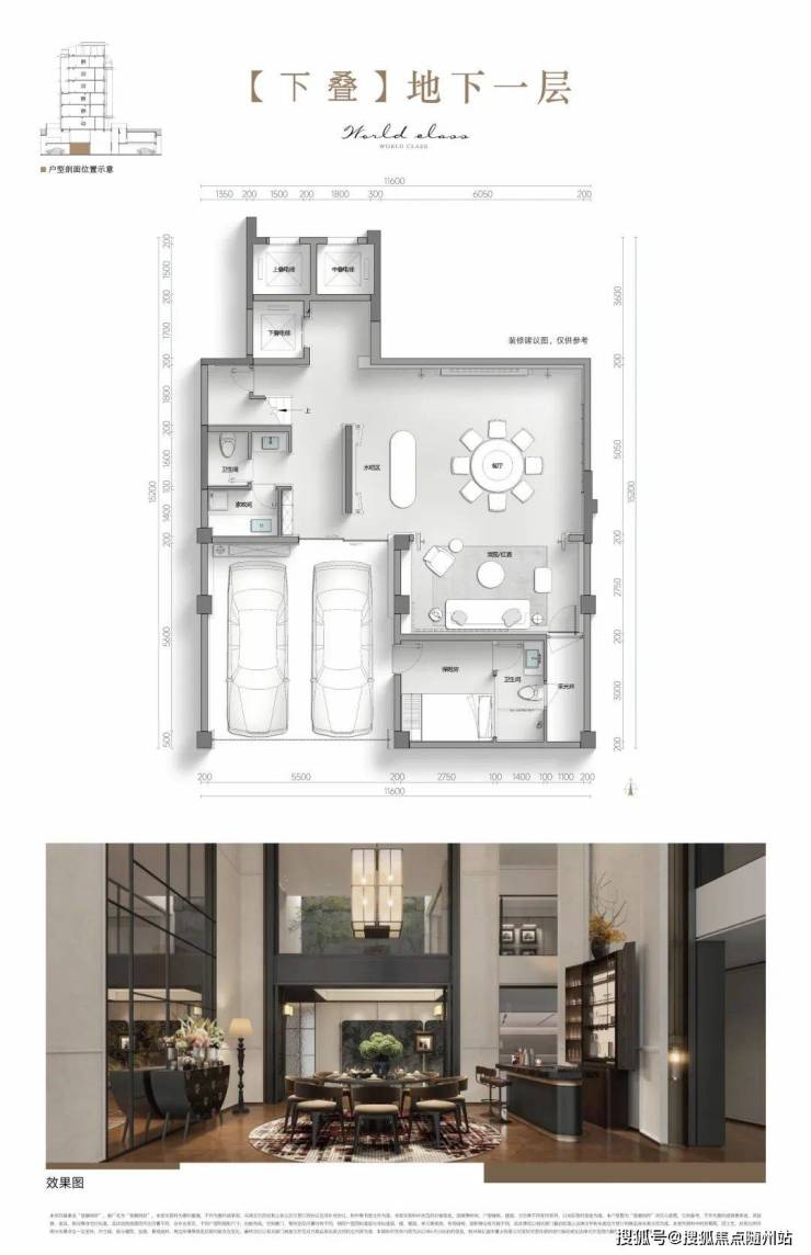 叠墅产品以高级审美+全系统高配定义高端居住标准。客餐厅地面采用灰色石材,日立中央空调、电梯及迈迪龙新风系统构成全维度舒适体系。厨电五件套包含西门子蒸烤一体机等。所有户型预留扫地机器人接口,上叠屋顶露台配备上下水,可改造为空中花园。地下私人独立车库,地下室毛坯交付后可以按自己的需求装修。
