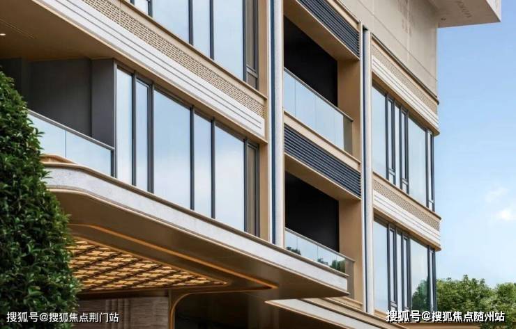 建筑立面采用香槟金铝板配合大面玻璃,细部使用美国灰麻石材,辅以精致金属线条,钢琴漆工艺波浪铝板,一看就很贵气,很有辨识度。