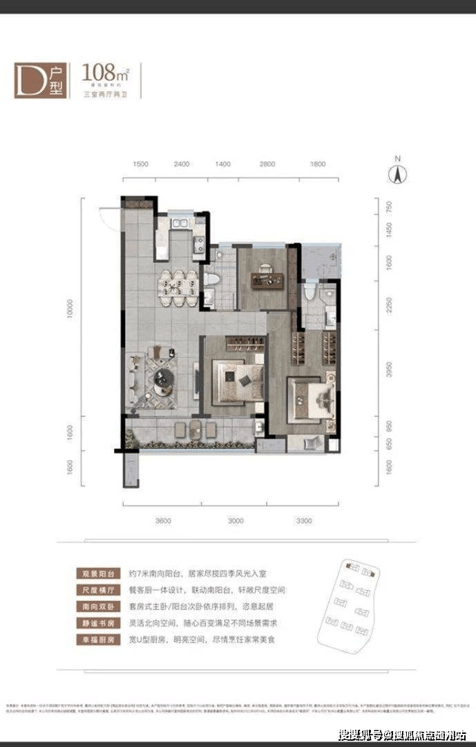 幸福很简单,凡事往“大”了享。在大边厅潮流之下,建筑面积约105㎡的边套成了众多置业购房者的心仪之选。三面采光,开间约6m的餐客一体设计,约7m景观阳台,采光充沛。建筑面积121㎡舒阔四房,玄关入户收纳有度、餐客一体巨幕横厅,尺度感俱佳。