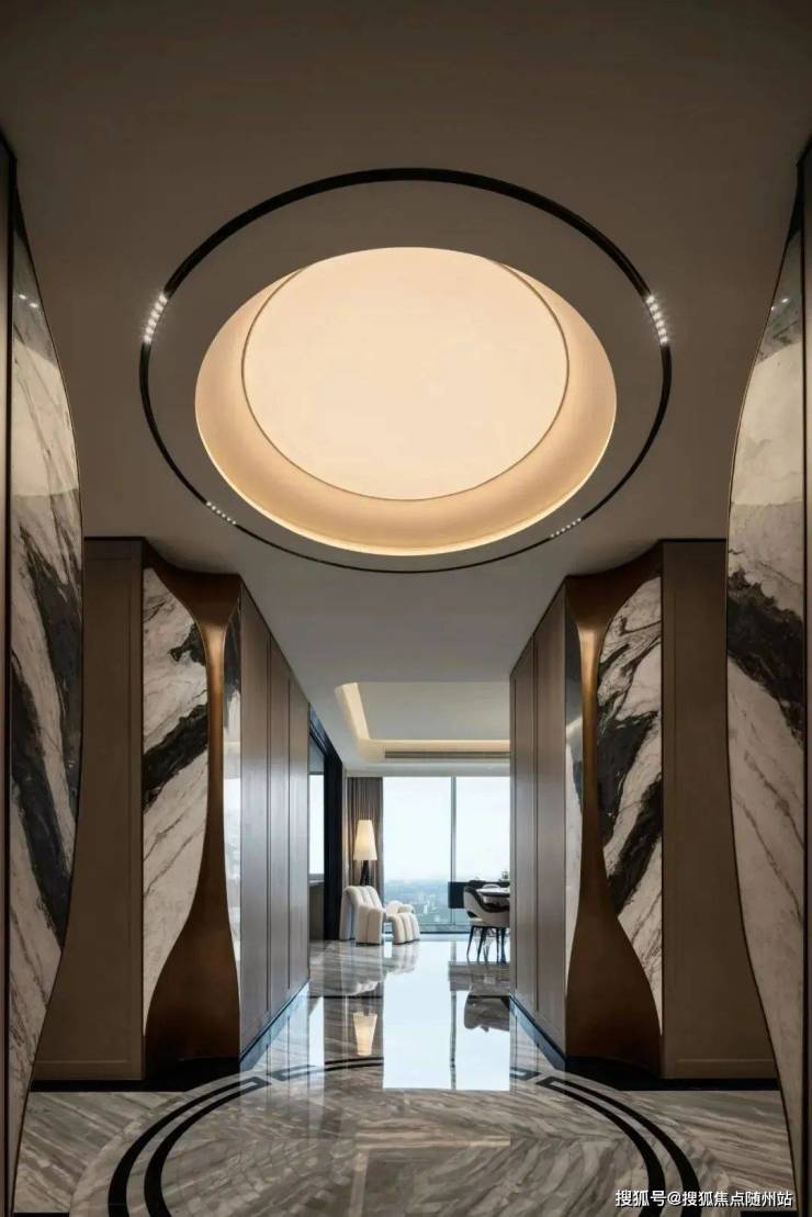 空中合院:南向70㎡星空露台,劳伦黑金与雪花白奢石拼花,主卧套间含双衣帽间