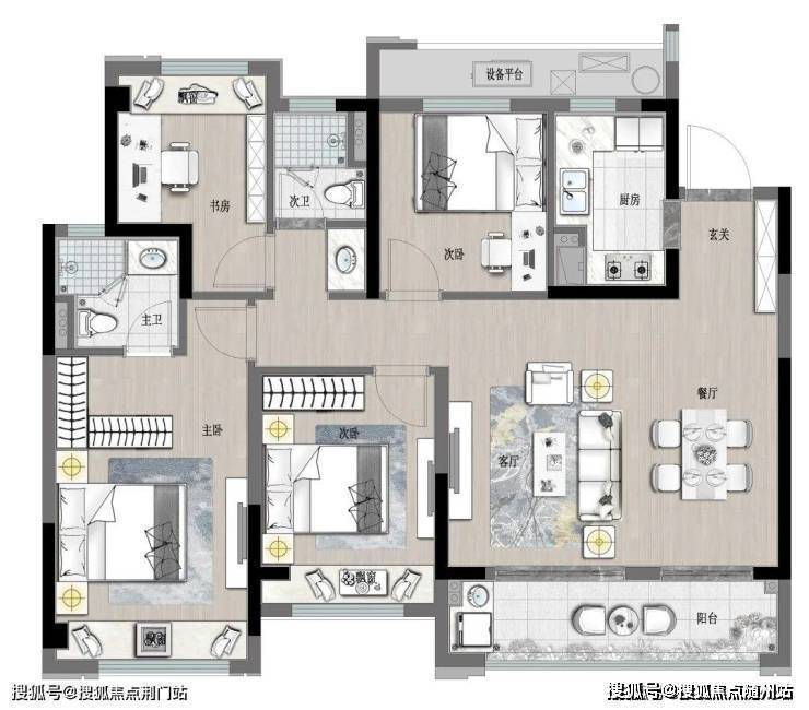 118㎡户型在设计上整体方正实用,以经典的“3+1”布局,飘窗设计,保证各个房间采光充沛和空气清新,契合成长型家庭在各个阶段的需求,当家庭迎来二胎或者三代同堂都能从容不迫。