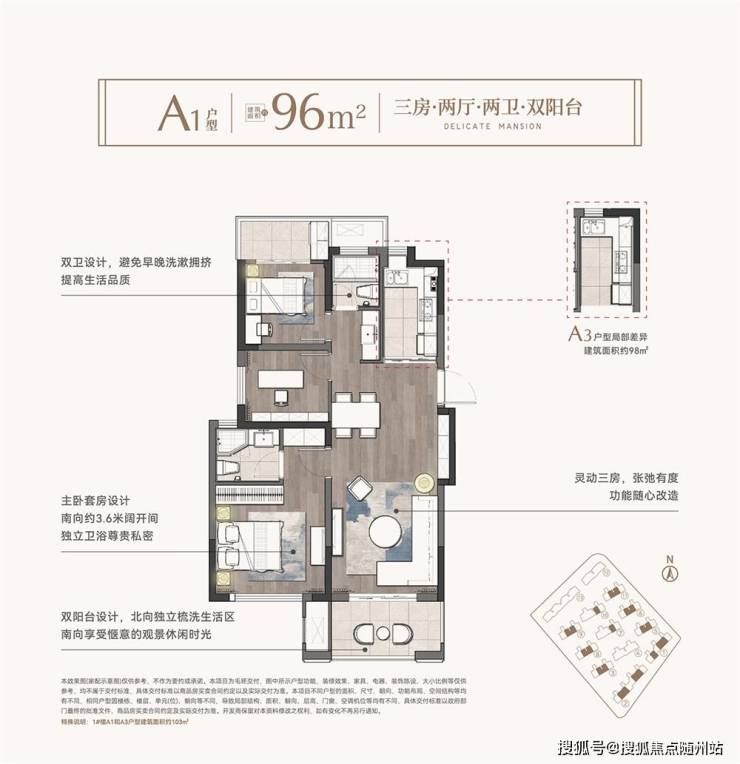 新中式建筑风格,建面约92-133㎡精装三至四房,96㎡臻稀3房,122㎡、133㎡阔景4房,功能完善。