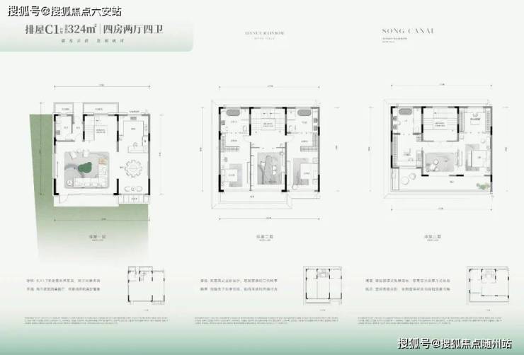 户型:涵盖建面约136~178㎡的宋风院墅,以及建面约285~379㎡的低密排屋