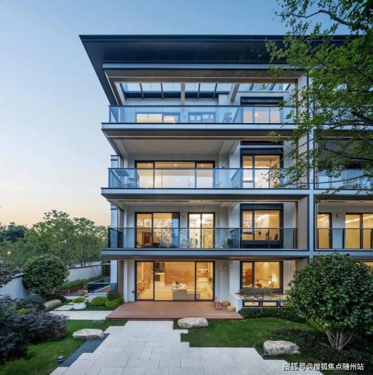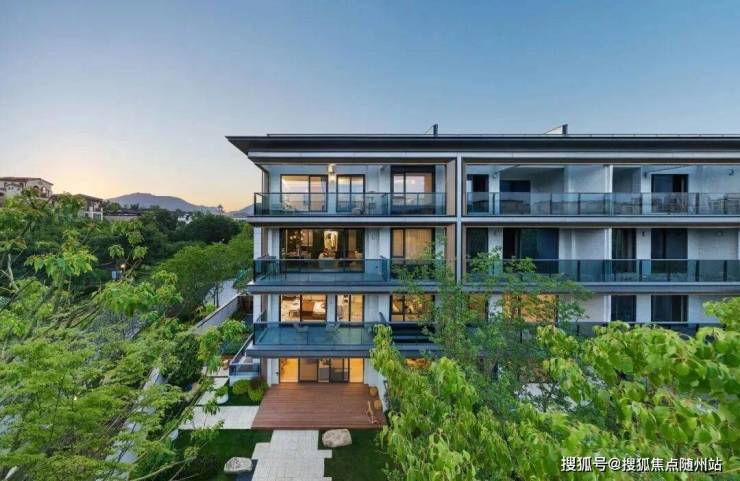 杭州大华春山隐树院,极简的建筑线条,大面积的通透玻璃,配合“油画框”式的设计元素,完全是现代主义美学。