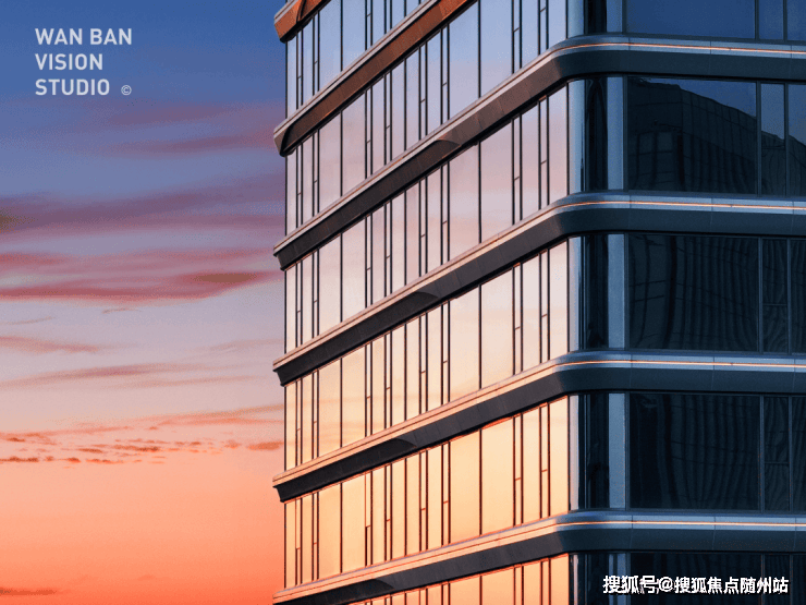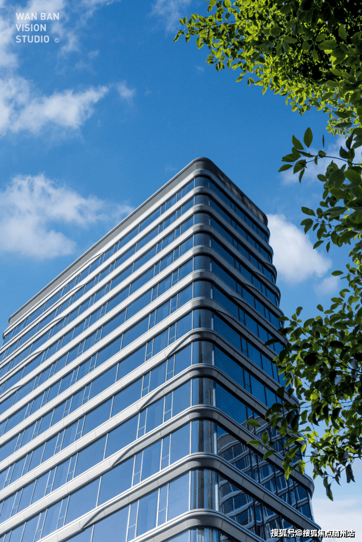 光是外立面就下足了成本。仔细看,它的四幢主体建筑并非常规的四方火柴盒,而是做了两侧内切,使剖面成为六边形,六个弧型转角,都是美妙的圆弧玻璃幕墙!