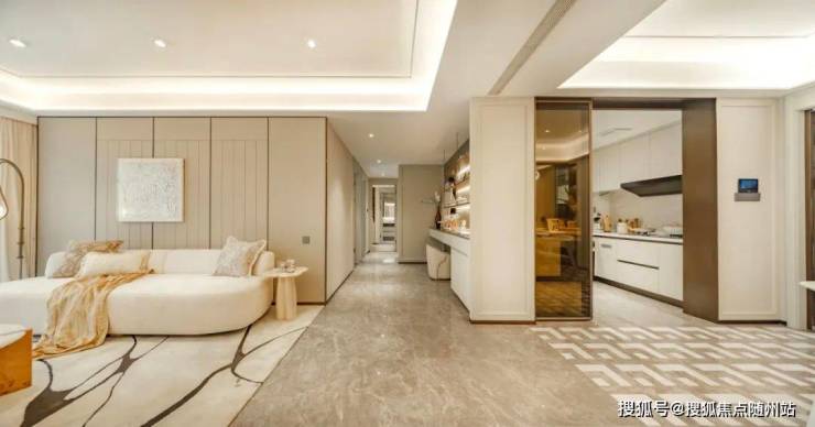 值得一提的是,约55平的宴会级无界方厅,采用LDKB一体化设计,将客餐厅、厨房、阳台全部打通,形成一个开放灵活的多功能聚厅。