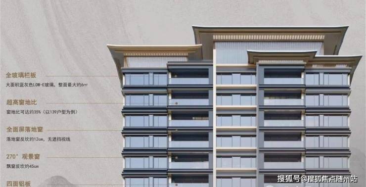 产品设计上,项目建筑塔冠取意古建重檐之美,师著三重飞檐。标准层披檐设计,结合大幅玻璃、金属线条等,以现代手法雕琢东方形制之美。