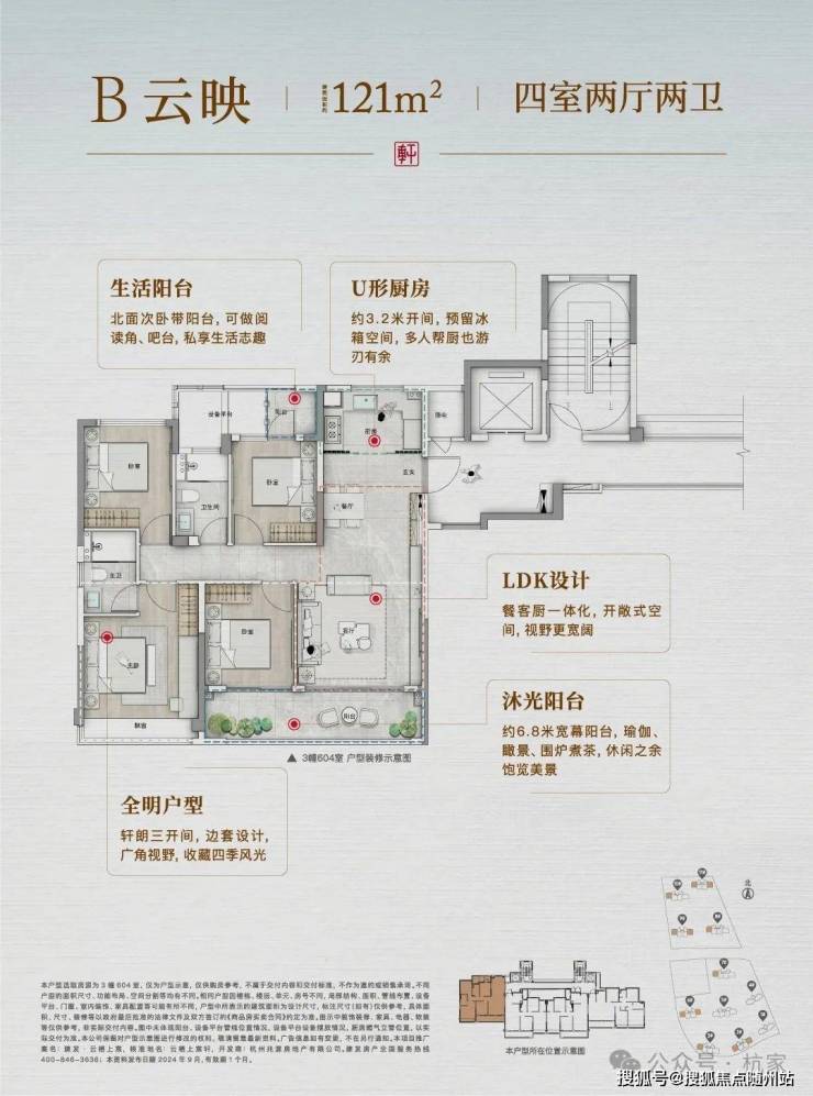全盘户型规划建面约104-140㎡三到四房全功能可变户型。