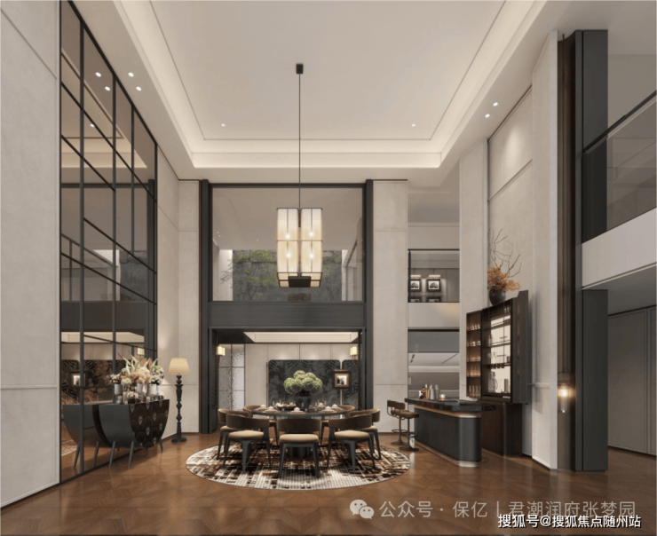 在空间维度突破上,君潮润府创新打造“立体生长空间”,下叠产品约6.6米层高地下室,通过约3.5米夹层+约3.1米地下层的组合,相当于赠送业主一座垂直艺术馆,夹层可改造成星空酒窖,地下层则能容纳专业级家庭影院。即便是上叠也拥有约2.8米层高的地下室,配合采光井,形成一番悠然自得的小天地。
