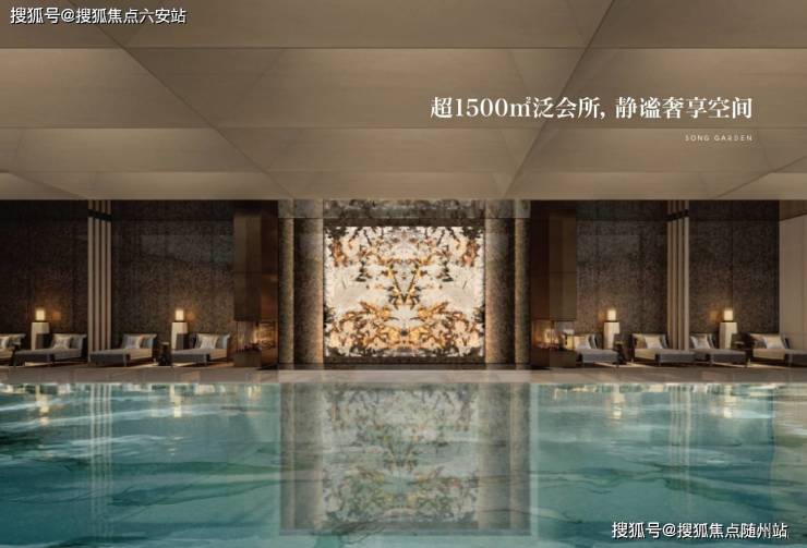 约1500㎡的下沉式会所“隐松庭”是项目的核心亮点,灵感源自纽约安缦酒店。会所中庭以《溪山行旅图》为蓝本,打造约7米高的溪山流瀑,配以5棵造型黑松,重现宋画意境。功能上,恒温泳池、健身房、私宴厅、书吧等空间一应俱全。