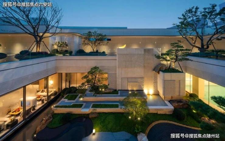 在景观营造上,项目采用双水院系统,通过松林、川流、秘境的三段式叙事,带来迂回丰富的山水体验[^7。南北区之间约210米的“绿腰带”景观带,既保持了两个区域的连接性,又确保了各自的私密性。