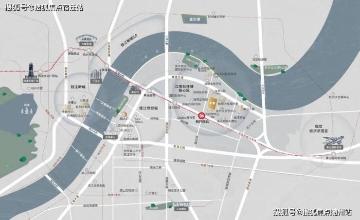 位置:萧山科技城核心区(泊梦路与元庆路交叉口),紧邻地铁19号线知行路站,距亚运村约2站、杭州东站4站,享钱塘江南岸270°江湾景观