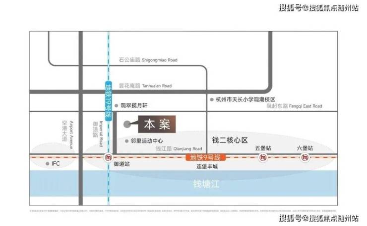 揽潮誉道坐落于上城区江河汇核心区,距离钱塘江仅约400米,与杭州国际金融中心(IFC)直线约1公里,9/19号线御道站地铁口就在身旁。这里既是钱塘江与京杭大运河的“双水交汇”之地,也是杭州“拥江发展”的战略重心——东揽IFC的摩天楼群,西望钱江新城的“日月同辉”,南接城市阳台的市民空间,北邻庆春商圈的烟火气,将“江景的浪漫”“城芯的繁华”“自然的静谧”完美融合。