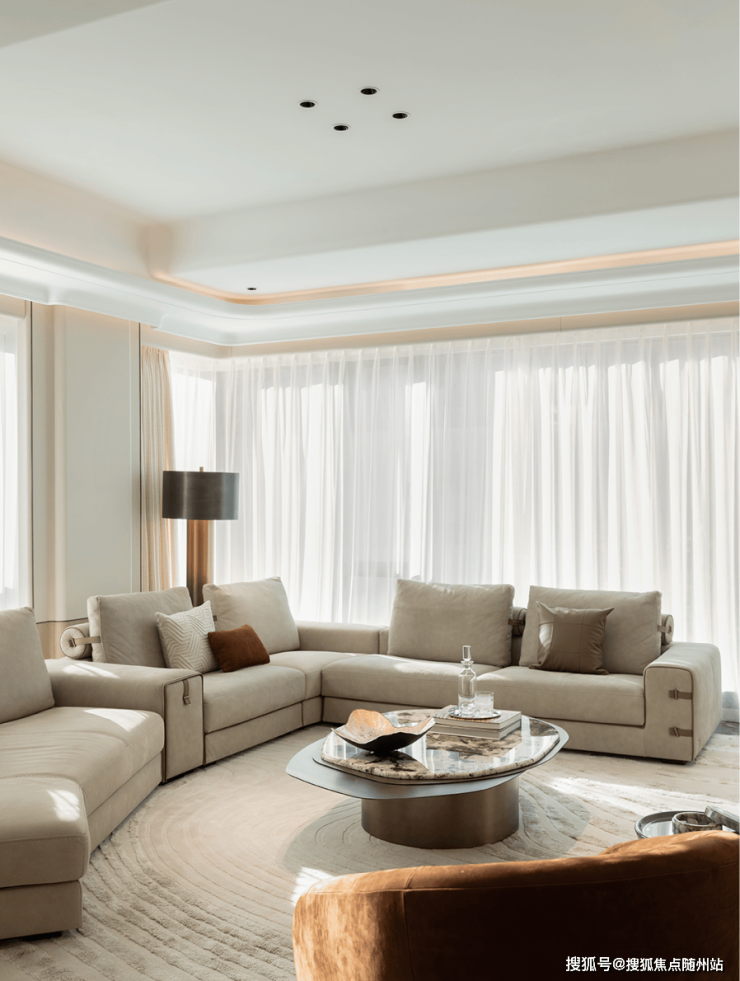 承载多样的家庭场景,彼此间的互动,意料之外又情理之中,在融洽自如的氛围中,折射出生活本来自由自在的样子,户外自然的风景和明亮的光线,270°跃入室内,在建面约360㎡凤咏空间流淌,陪伴此时此刻,和更多的时光。