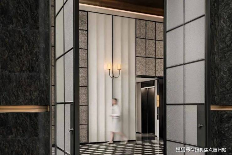 走廊的墙面材质十分优雅,壁灯照亮细节,玻璃幕墙增加光线的通道,细节点缀奢华。