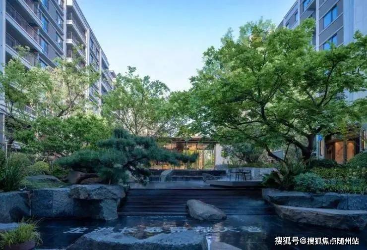 在景观塑造上,景粼天著以一庭一环三轴十景为主题,打造带有独具江南韵味的新中式园林,实现一步一景。